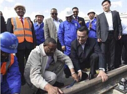 2014年5月5日,国务院总理李克强考察亚的斯亚贝巴轻轨项目,埃塞俄比亚总理海尔马里亚姆陪同。看到中埃双方员工正在铺轨作业,李克强同海尔马里亚姆一起拿起扳手,拧紧螺丝。
